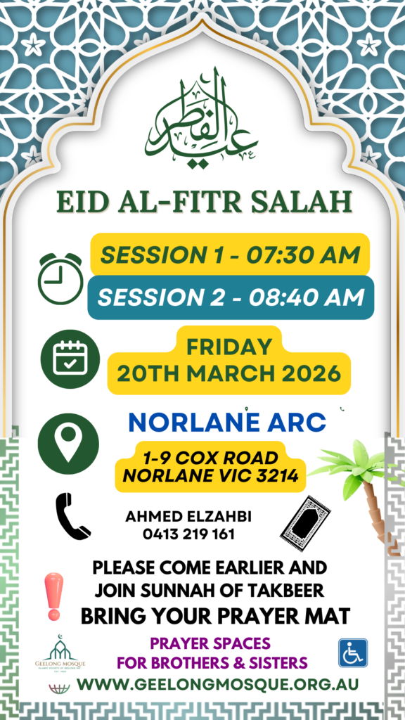 Ahmed Elzahbi – President, Islamic Society of Geelong Inc. admin@geelongmosque.org.au